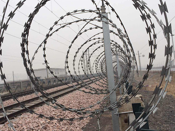 鐵路柵欄一改往日焊接鋼絲網柵欄、刺絲網柵欄等產品,改為防御性更強、壽命更長久的:鋼筋混凝土柵欄+0.5米高刺絲滾籠的金屬防護柵欄。 鐵路金屬防護柵欄刺繩:縱向拉筋采用熱鍍鋅刺絲,雙擰編織工藝,刺…