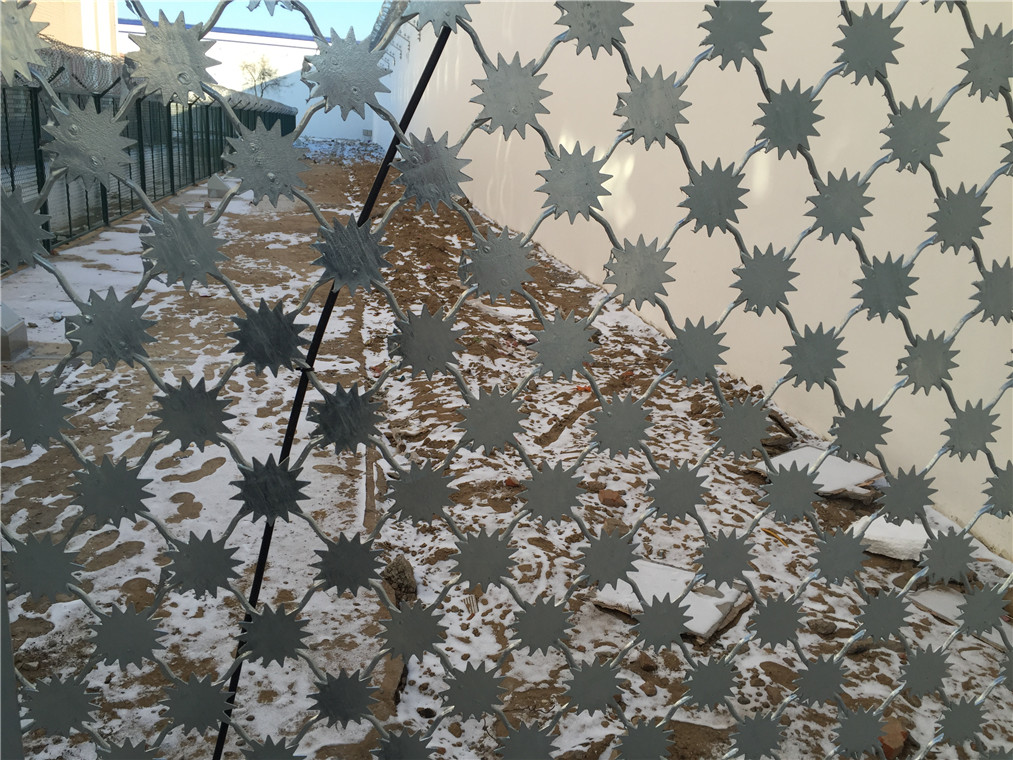 監獄梅花刺隔離網是一種新型的監獄防護網,其產品自身比較重,安裝好后整體威武雄壯,能夠很好的達到威懾效果。每一個格子之間都均布滿梅花刺片,達到防止手攀腳蹬的效果。目前在監獄、看守所等系統中常用,可以用在警戒區、監舍監區隔離網、車行通道、AB大門等地方,使用范圍非常的廣泛。監獄梅花刺隔離網的安裝標準和要求是什么樣的?