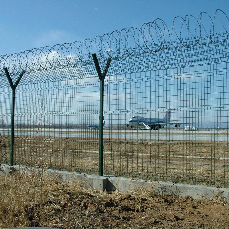 機(jī)場(chǎng)圍界Y型立柱安裝V型圍網(wǎng)加裝蛇腹型刀刺滾籠,會(huì)在機(jī)場(chǎng)外圍形成難以逾越的屏障,保障了機(jī)場(chǎng)各機(jī)組人員的安全。鋼筋網(wǎng)圍界安裝簡(jiǎn)便,施工簡(jiǎn)單,高阻隔,防攀爬成為機(jī)場(chǎng)飛行區(qū)圍界的必備之選。