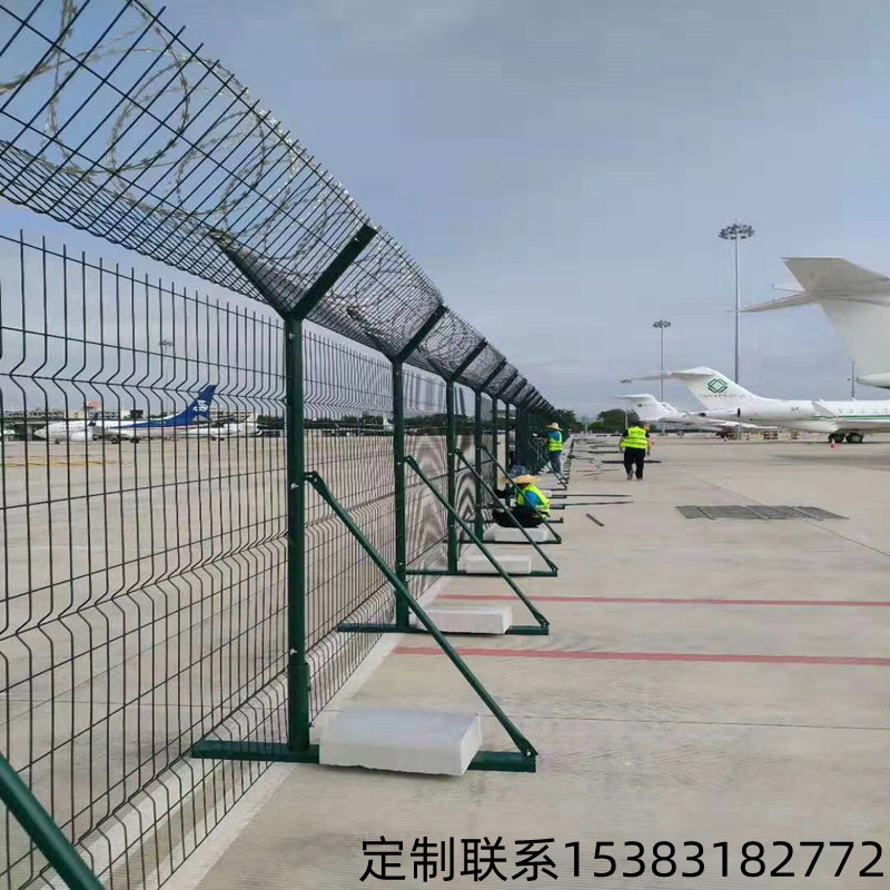 機(jī)場(chǎng)飛行區(qū)圍界網(wǎng)的組成多由Y型立柱+鋼筋焊接網(wǎng)片+蛇腹式刀刺網(wǎng)組合而成,大多數(shù)時(shí)候叫做機(jī)場(chǎng)鋼筋網(wǎng)圍界、機(jī)場(chǎng)鐵絲網(wǎng)圍界或者機(jī)場(chǎng)防護(hù)網(wǎng),但是這類防護(hù)網(wǎng)不只是應(yīng)用在機(jī)場(chǎng)。由于這種鋼筋網(wǎng)結(jié)構(gòu)有很好的隔離和防攀爬功能,可以應(yīng)用在很多地方,例如廠區(qū)、園林、軍事、邊防等等。安平縣艾瑞金屬絲網(wǎng)有限公司生產(chǎn)的機(jī)場(chǎng)圍界網(wǎng),專注于高質(zhì)量、安全性,隨著市場(chǎng)的不斷更新迭代,我們出品了多款機(jī)場(chǎng)鋼筋網(wǎng)圍界,滿足不同地域、不同級(jí)別、不同環(huán)境的需求。