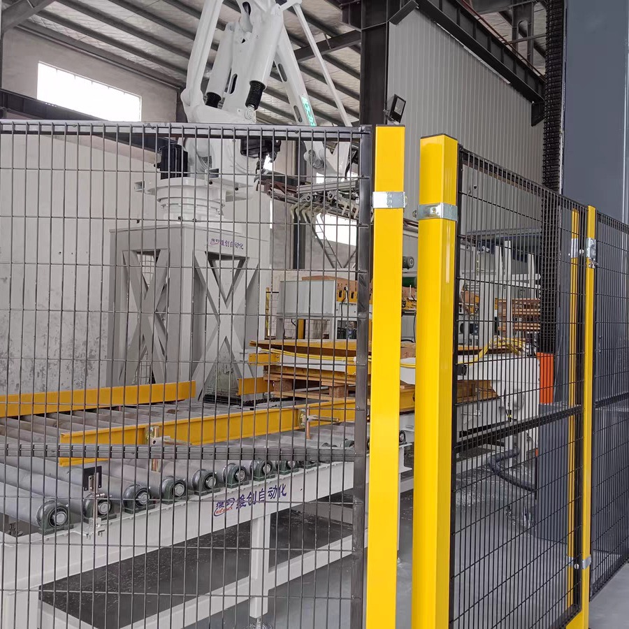 機(jī)器人安全圍欄一般使用4040鋁型材和4545鋁型材 ,圍欄成片安裝,包括型材、網(wǎng)板、連接配件、杯型地腳、裝飾件。圍欄門分單開門、雙開門、移門。一般根據(jù)客戶或場(chǎng)地需求制定效果圖,確認(rèn)尺寸,進(jìn)行加工制作。