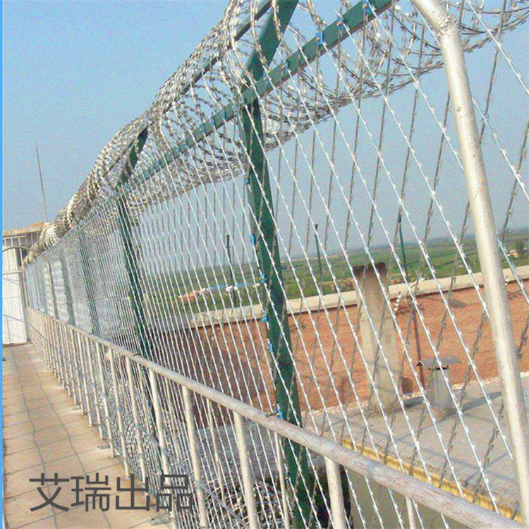 隔離網(wǎng)是非常重要的監(jiān)所安全防護設(shè)施,隔離網(wǎng)由焊接鋼網(wǎng)加蛇腹形刀刺網(wǎng)組合而成。產(chǎn)品具有結(jié)構(gòu)新穎、堅固緊密、網(wǎng)面平整、網(wǎng)孔均勻、刀鋒銳利、防攀爬、抗腐蝕性強等特點.建設(shè)于監(jiān)所的內(nèi)外墻地面及高墻之上,網(wǎng)墻內(nèi)側(cè)或頂部加裝蛇腹形刀剌網(wǎng),形成一道高不可攀、難以逾越的隔離障礙。配合高壓打擊電網(wǎng)、各種監(jiān)控報警設(shè)備確保看守所安全。具有堅固耐用、美觀大方、刀鋒封利、防攀爬、抗強風(fēng)、抗沖擊、抗剪切、抗腐蝕等優(yōu)異特點。主要用于監(jiān)所圍欄、看守所鋼網(wǎng)墻、邊界鋼網(wǎng)墻、邊防線防護網(wǎng)等高安全場所。