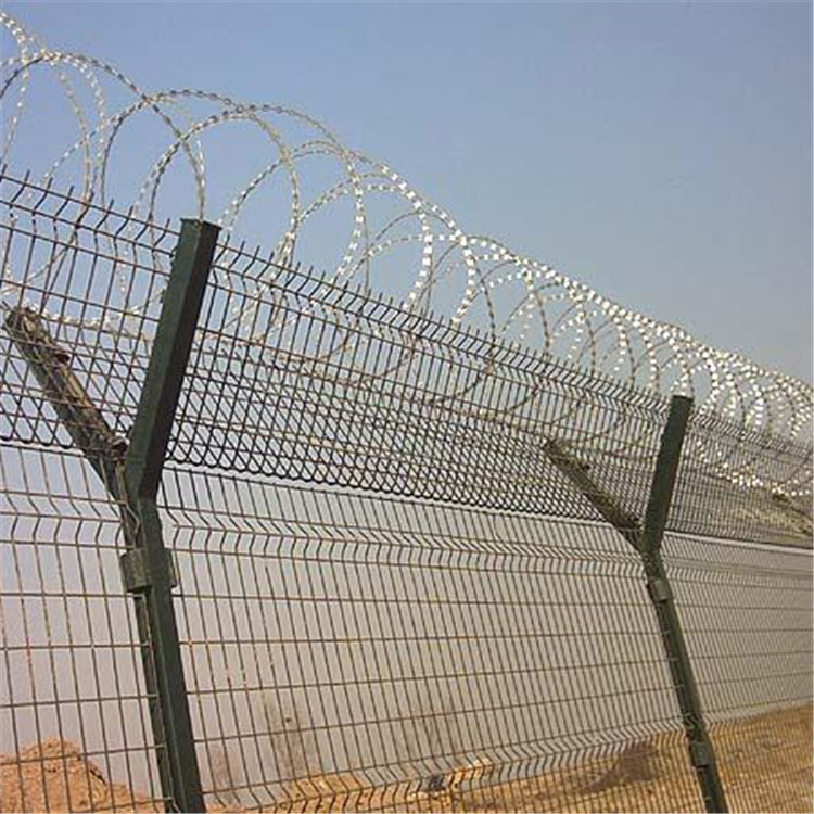 監(jiān)獄鋼網(wǎng)墻又稱作“Y型安全防御護(hù)網(wǎng)”,是由V型支架立柱,加強型焊接片網(wǎng),安全防盜連接件和熱鍍鋅刀片刺籠組成強度和安全防御性級別很高。近年來,被廣泛應(yīng)用在監(jiān)獄,軍事基地等高安全場所。在監(jiān)獄鋼網(wǎng)墻頂部加裝刀片剌絲、刀片剌繩后又很好的增強了安全防護(hù)性能。采用電鍍、熱鍍、噴塑、浸塑等防腐形式,具有很好的抗老化抗曬、耐候等特點。產(chǎn)品造型美觀、花色多樣,既起到圍欄作用,又起到美化作用。由于具有安全性高、防攀爬能力好網(wǎng)片連接方式采用特制sbs緊扣件,有效防止人為的破壞性拆卸橫向四道折彎加強筋,使網(wǎng)面強度顯著增加。