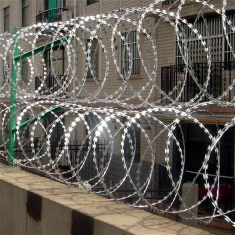 為了加強圍欄的高安全性,常有客戶要求在護欄的上面在一層刀片刺網來加強安全性能。刀片刺網具有美觀、經濟實用、防阻效果好、施工便利等優異特點,刀片刺網常見的表面處理有電鍍鋅,熱鍍鋅和噴塑處理。目前,刀片刺網已被廣泛應用于許多國家的工礦企業、園林公寓、邊防哨所、軍事領域、監獄、看守所、政府建筑物和其他國家的安全設施。