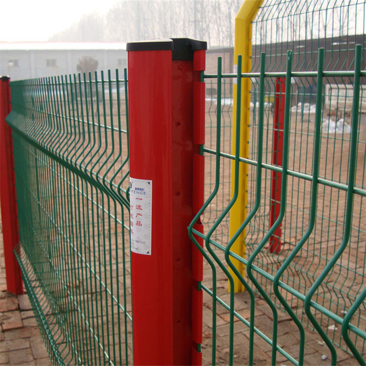 其次,桃型柱護欄網的安裝方式很不普通,網片和立柱不是簡單的通過連接掛件連接,而是在網片做好的時候,通過機器把折彎處的網絲減去,形成一個內凹的形狀,然后在安裝的同時,把內凹的部分關在桃型柱立柱的卡槽內,確保網片和立柱的穩固。